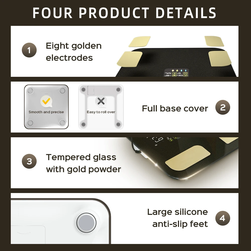 Fitdays 8 Electrode Smart Body Scale Smart Full Body Composition Bioimpedance Scale Digital Body Fat Weight Scale Balance