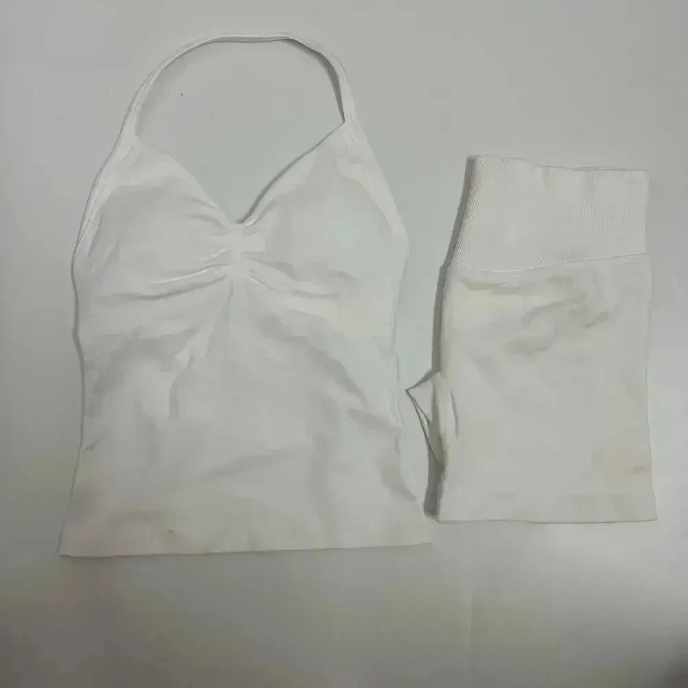 Fitness Girl Comfortable and Breathable Sports Neck Long Tank and Shorts Set Sports Yoga Vest Fitness Exercise Yoga Suit Set